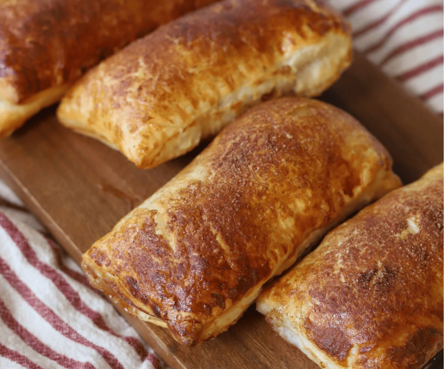 These are brand new to the blog and turned out so yummy. It reminds me of the Apple Pies from McDonalds, but they taste way better made at home. We're using store bought Puff Pastry which makes this recipe really quick and ready in just 40 minutes!